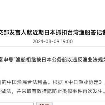 【日本扣船它唯唯诺诺,大陆交涉它大声制止,让世界看“贱”台湾】8月9日,中国外交部针对台湾籍渔船被日方扣押一事发声,指责日方无权在相关水域对中方渔船执法,已提出严正交涉,要求日方立即纠正错误。而台外事部门却声称,这是民进党当局和日本政府之间的事,双方有所谓条约,大陆无权过问。